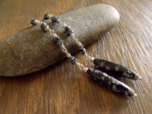 Dark Winter - Long Dangle Snowflake Obsidian Earrings with Sterling Silver
