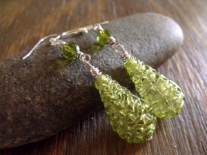 Mythic Olivine Glass - Vintage Smoky Green Spun Glass Beaded Earrings with Swarovski Crystals