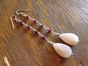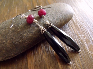 Stroke Of Midnight - Dangle Earrings Featuring Faceted Ruby Beads and Black Onyx