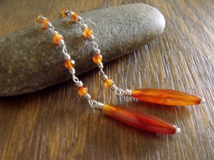 Shades of Orange - Long Dangle Earrings with Faceted Carnelian and Sterling Silver