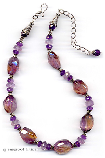 Gorgeous, large faceted nuggets of genuine ametrine with amethyst gemstone beads.
