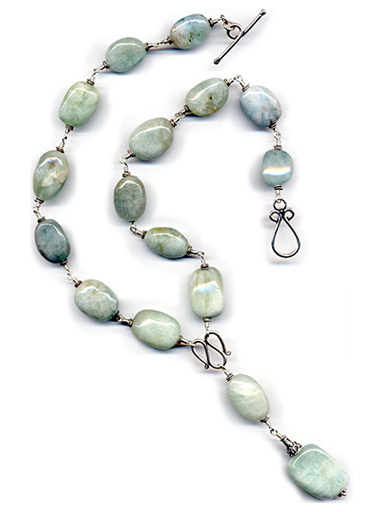 Natural nuggets of genuine aquamarine linked with sterling silver wire