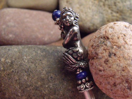 Intricately detailed mermaid with lapis lazuli accents.