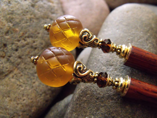 A gallery of sold hairsticks featuring vintage and contemporary Swarovski® crystals, vintage glass, and Venetian glass finials. I may be able to reproduce designs found here, so please ask if something catches your eye.