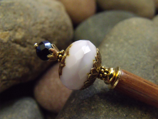 A gallery of sold hairsticks featuring vintage and contemporary Swarovski® crystals, vintage glass, and Venetian glass finials. I may be able to reproduce designs found here, so please ask if something catches your eye.