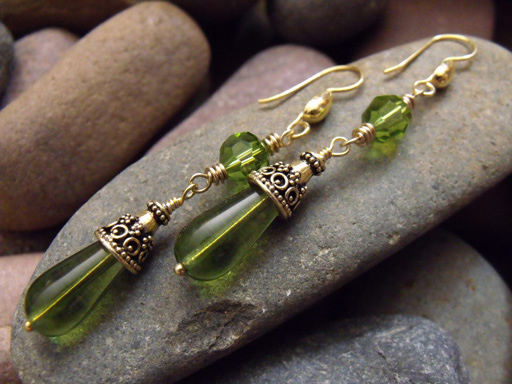 Olivine glass and Swarovski® crystals with vermeil accents