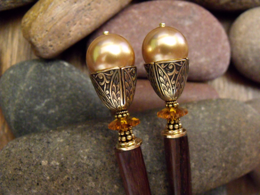A gallery of sold hairsticks featuring vintage and contemporary Swarovski® crystals, vintage glass, and Venetian glass finials. I may be able to reproduce designs found here, so please ask if something catches your eye.