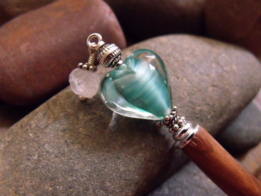 A gallery of sold hairsticks featuring gemstone, glass and sterling silver charms on a simple dangle or ornate chandelier. If you fancy something in this collection, please let me know and I will see if it can be reproduced.