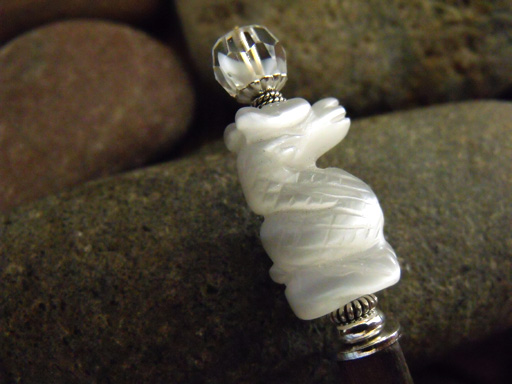 A gallery of sold hairsticks featuring figurals including the Buddha and fantasy figures such as Mermaids, Unicorns, and Fairies. Hearts and skulls too. I may be able to reproduce designs found here, so please ask if something interests you.