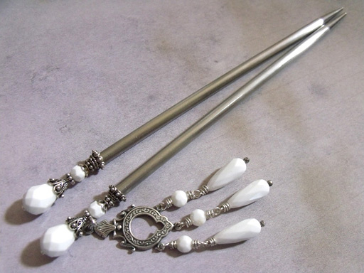 A gallery of sold hairsticks featuring gemstone, glass and sterling silver charms on a simple dangle or ornate chandelier. If you fancy something in this collection, please let me know and I will see if it can be reproduced.