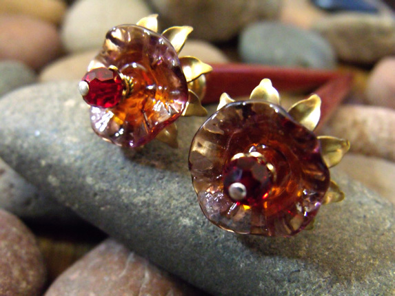 Fancy brass and glass flowers embellished with Swarovski® crystals.