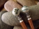 - A pair of silverplated brass beads attach the finials to their wooden stems