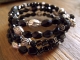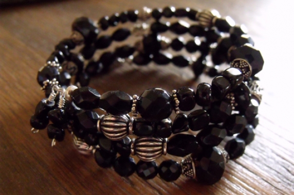 Darkness Call Us - Black Onyx, Rainbow Obsidian, Vintage Glass and Sterling Silver Memory Wire Wrap Bracelets