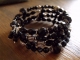 The night was bleak and the sea looked black when I came upon a sight so stark, so deeply dark, I thought I must be dreaming. I was looking at something unreal, unknown, like a scene from The Twilight Zone. I wanted to run, but as unhuman as the creature looked with its ink black ashes for skin and claws instead of hands, its weeping kept me there. Tears poured from a single golden eye and sobs issued from its broad chest. Air seemed to compress around us, every breath became a chore as I did my best to comfort the beast. I wished I could do more. He soon rose on shaky legs, gently lifted his silent mate and with a brief, mournful glance my way, they vanished into an ebony black hole. This is the tale that inspired the “Darkness Calls Us” bracelet.