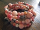 Peach Whimsies - Set of Two Peach Candy Jade and Sterling Silver Bohemian Style Wrap Bracelets